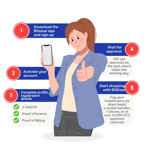 Download the app and sign up for a BillEase Account before check-out for more seamless transactions. You only need 2% of the total product amount to be available in your BillEase credit line to proceed and enroll now, pay later.